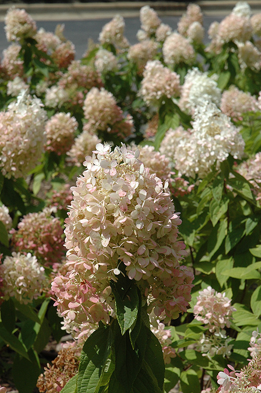 A showy garden shrub valued for its cone-shaped panicles of elegant white flowers which mature with flushes of light pink; somewhat coarse in appearance, regular pruning recommended; needs slightly acidic well-drained soil