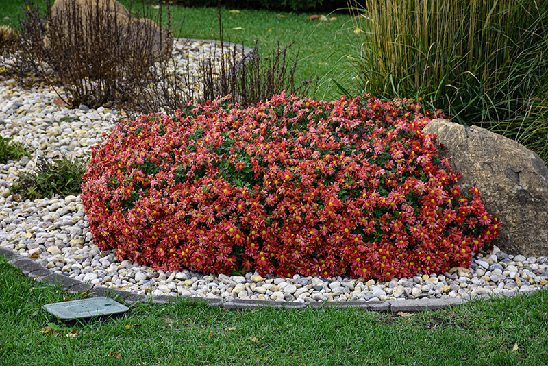Firestorm® Chrysanthemum will grow to be about 24 inches tall at maturity, with a spread of 24 inches. It grows at a medium rate, and under ideal conditions can be expected to live for approximately 10 years. As an herbaceous perennial, this plant will usually die back to the crown each winter, and will regrow from the base each spring. Be careful not to disturb the crown in late winter when it may not be readily seen!