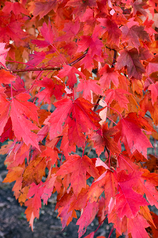 A silver maple/red maple hybrid with an upright, well branched growth habit, showy red flowers along the bare branches in early spring, a good residential shade tree; more tolerant of adverse conditions than red maple