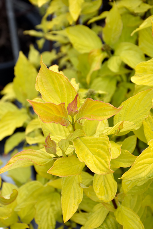 Neon Burst™ Dogwood has attractive chartreuse foliage with hints of yellow which emerges coppery-bronze in spring on a plant with a round habit of growth. The pointy leaves are highly ornamental and turn outstanding shades of gold, red and deep purple in the fall. The scarlet branches are extremely showy and add significant winter interest.