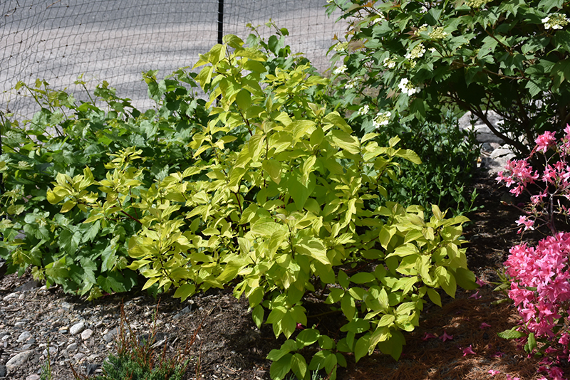 This amazing introduction features yellow to chartreuse foliage all summer long; great fall color in hues of purple, red, yellow, and orange; showy bright red stems in winter; excellent for bringing a splash of four-seasons color to the garden