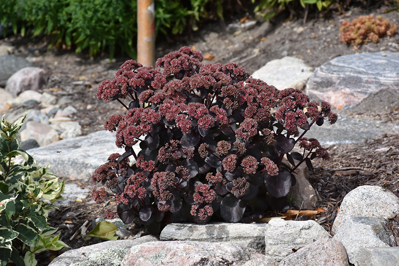 Night Embers Stonecrop will grow to be about 24 inches tall at maturity, with a spread of 26 inches. When grown in masses or used as a bedding plant, individual plants should be spaced approximately 24 inches apart. It grows at a fast rate, and under ideal conditions can be expected to live for approximately 15 years. As an herbaceous perennial, this plant will usually die back to the crown each winter, and will regrow from the base each spring. Be careful not to disturb the crown in late winter when it may not be readily seen!