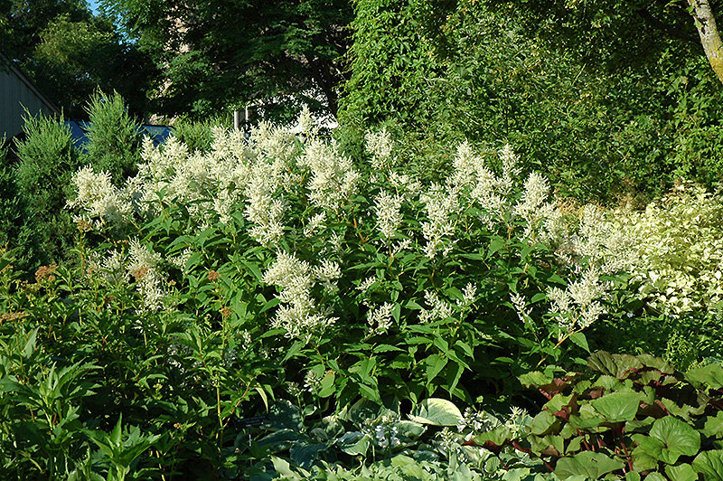 White Fleeceflower features airy spikes of creamy white flowers rising above the foliage from early summer to early fall. The flowers are excellent for cutting. Its pointy leaves remain green in colour throughout the season.