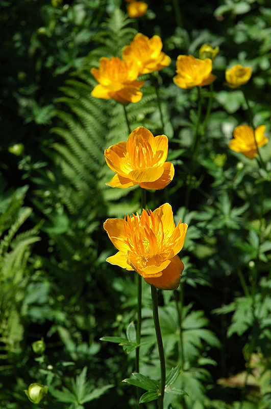 Golden Queen Globeflower will grow to be about 30 inches tall at maturity, with a spread of 24 inches. When grown in masses or used as a bedding plant, individual plants should be spaced approximately 18 inches apart. It grows at a medium rate, and under ideal conditions can be expected to live for approximately 10 years. As an herbaceous perennial, this plant will usually die back to the crown each winter, and will regrow from the base each spring. Be careful not to disturb the crown in late winter when it may not be readily seen!
