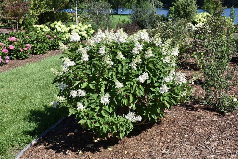 A beautiful long-season bloomer featuring cones of mixed sterile and fertile white flowers in mid to late summer which transform to a rich pink; an improved version of 'Pinky Winky' hydrangea with larger, fuller flower heads and deeper hot pink color