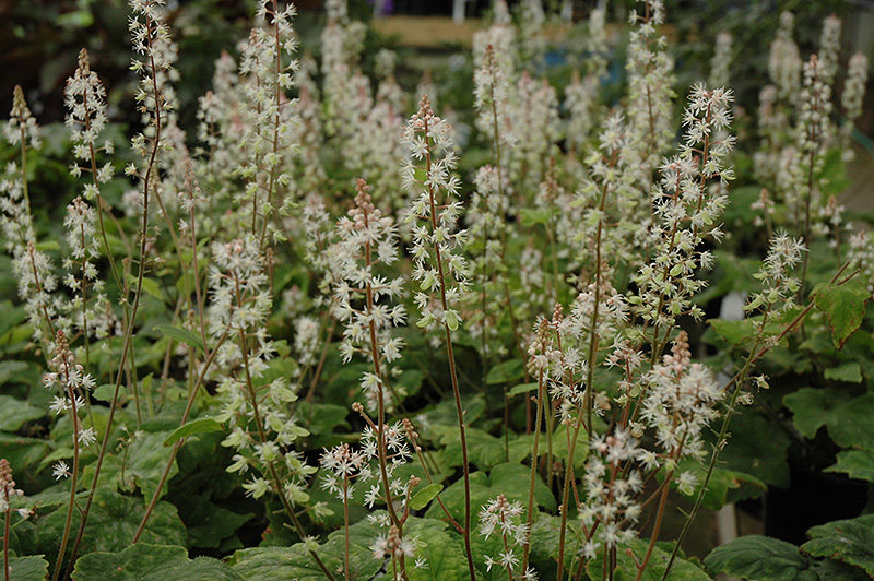 Wherry's Foamflower will grow to be only 6 inches tall at maturity extending to 12 inches tall with the flowers, with a spread of 12 inches. When grown in masses or used as a bedding plant, individual plants should be spaced approximately 10 inches apart. Its foliage tends to remain low and dense right to the ground. It grows at a fast rate, and under ideal conditions can be expected to live for approximately 10 years. As an evegreen perennial, this plant will typically keep its form and foliage year-round.
