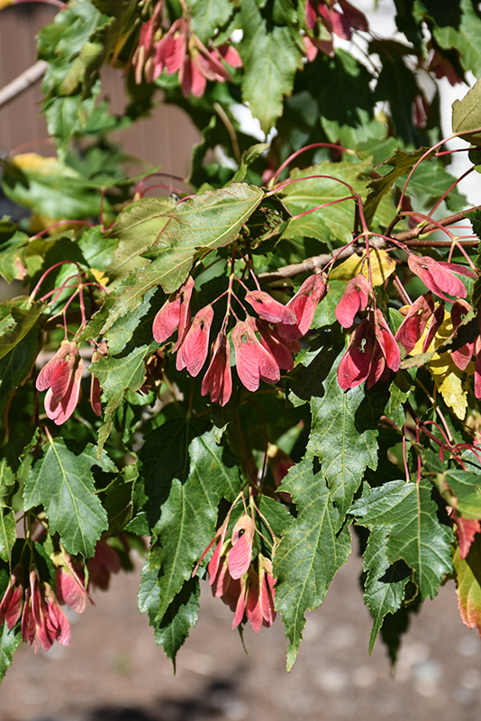 Flame Amur Maple is primarily grown for its highly ornamental fruit. It features abundant showy scarlet samaras in late summer. It has dark green deciduous foliage. The lobed leaves turn outstanding shades of scarlet and in the fall.