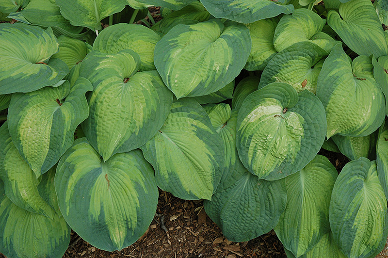 Shade loving and quick growing, this variety features mounds of chartreuse foliage with wide blue-green margins; white flowers appear in the mid-summer months; adds texture, contrast and color to beds, borders and containers; low maintenance