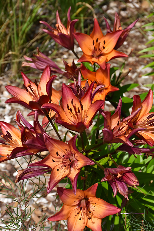 A stunning variety of lily featuring large orange blooms that fade outward to pink tips that is very captivating to the eye; an intense splash of color when massed in the garden or border areas